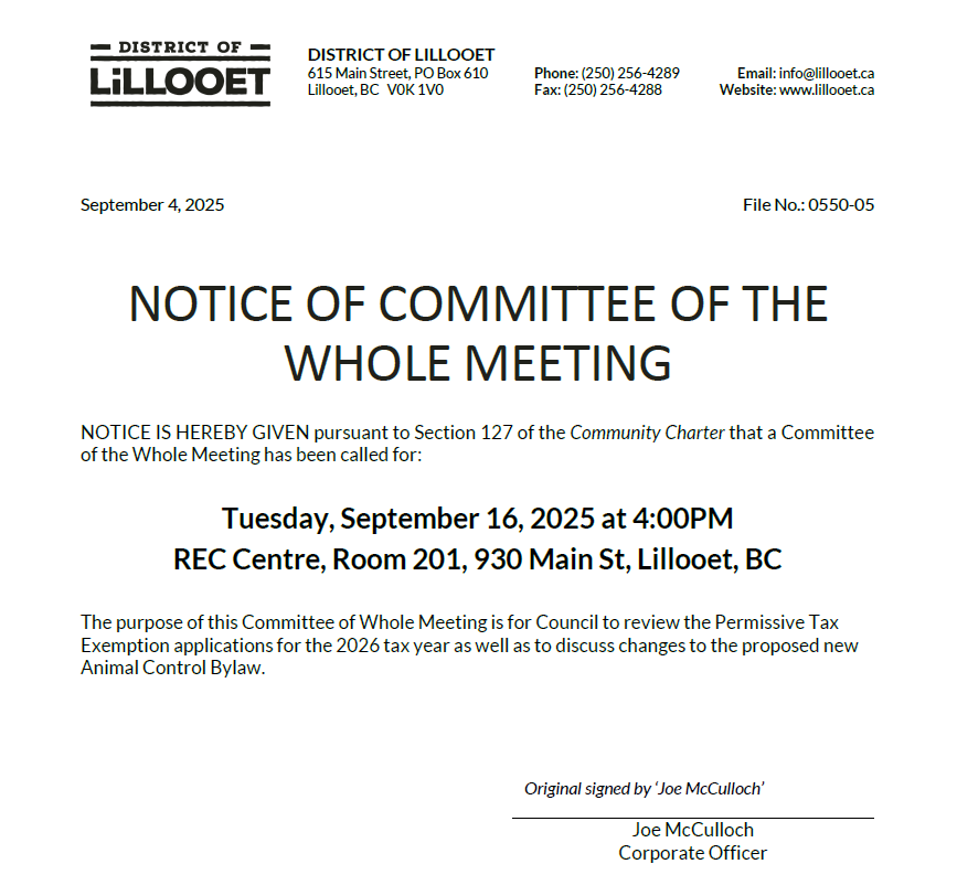 Notice of Committee of the Whole Council Meeting - Sept 16, 4pm Sep 4 Written By Christina Timms Christina Timms